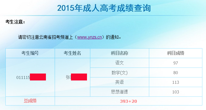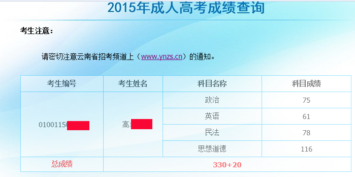 2015年云南省成人高考考試【昆明耀恒教育】部分優秀學員成績名單: