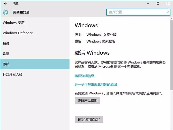 在全新安裝Win10 Build 10240專(zhuān)業(yè)版后,未激活狀態(tài)下在系統(tǒng)設(shè)置——更新和安全——激活頁(yè)面下會(huì)有“轉(zhuǎn)到‘應(yīng)用商店’”按鈕,點(diǎn)擊此按鈕后可自動(dòng)打開(kāi)應(yīng)用商店并轉(zhuǎn)到Win10專(zhuān)業(yè)版購(gòu)買(mǎi)頁(yè)面。