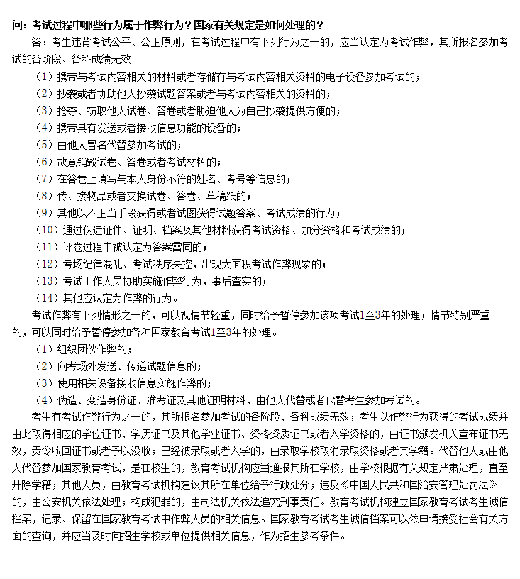 在成人高考考試過程中哪些屬于作弊行為?國家規定作弊要如何處理?